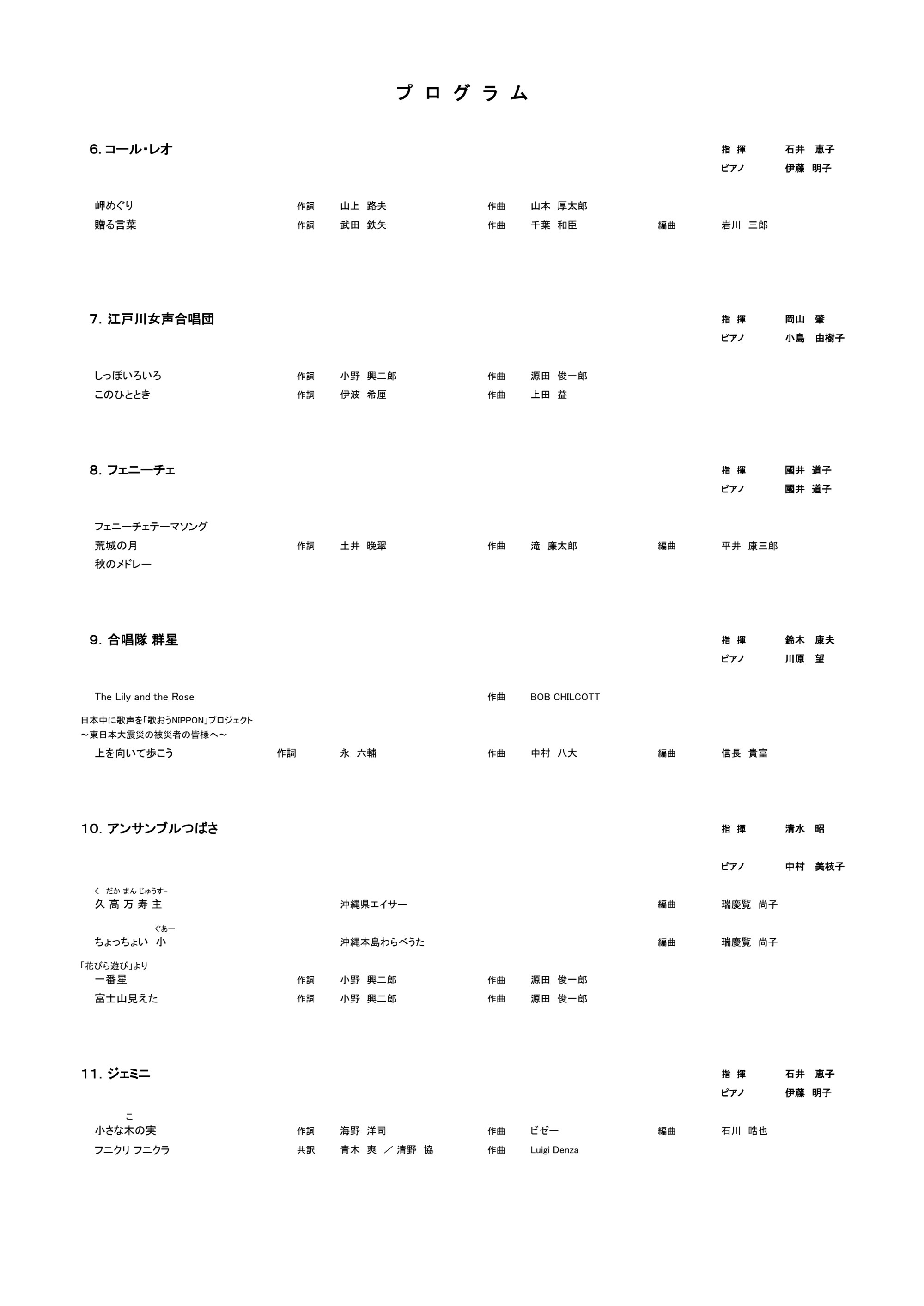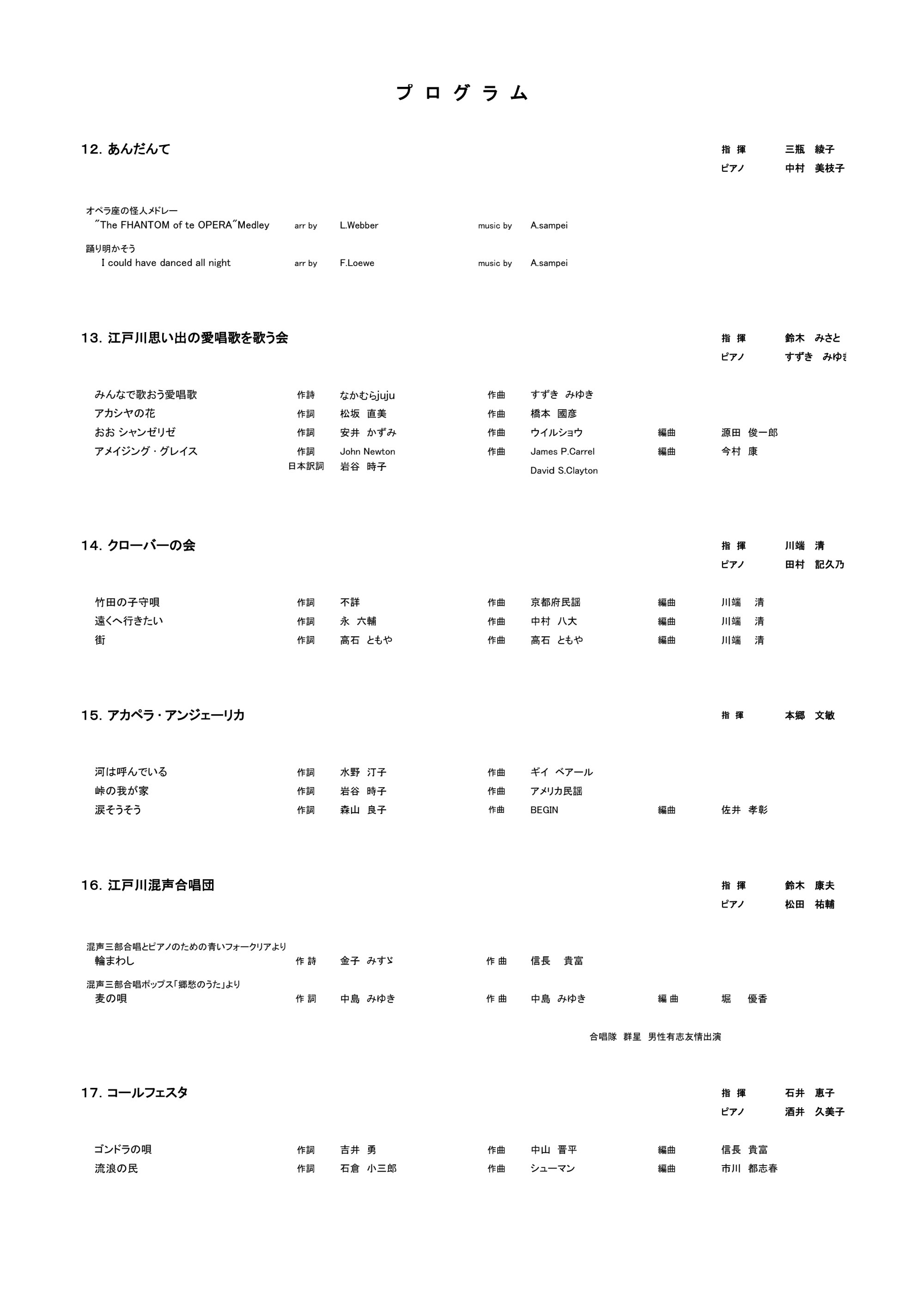 江戸川区合唱祭のプログラム